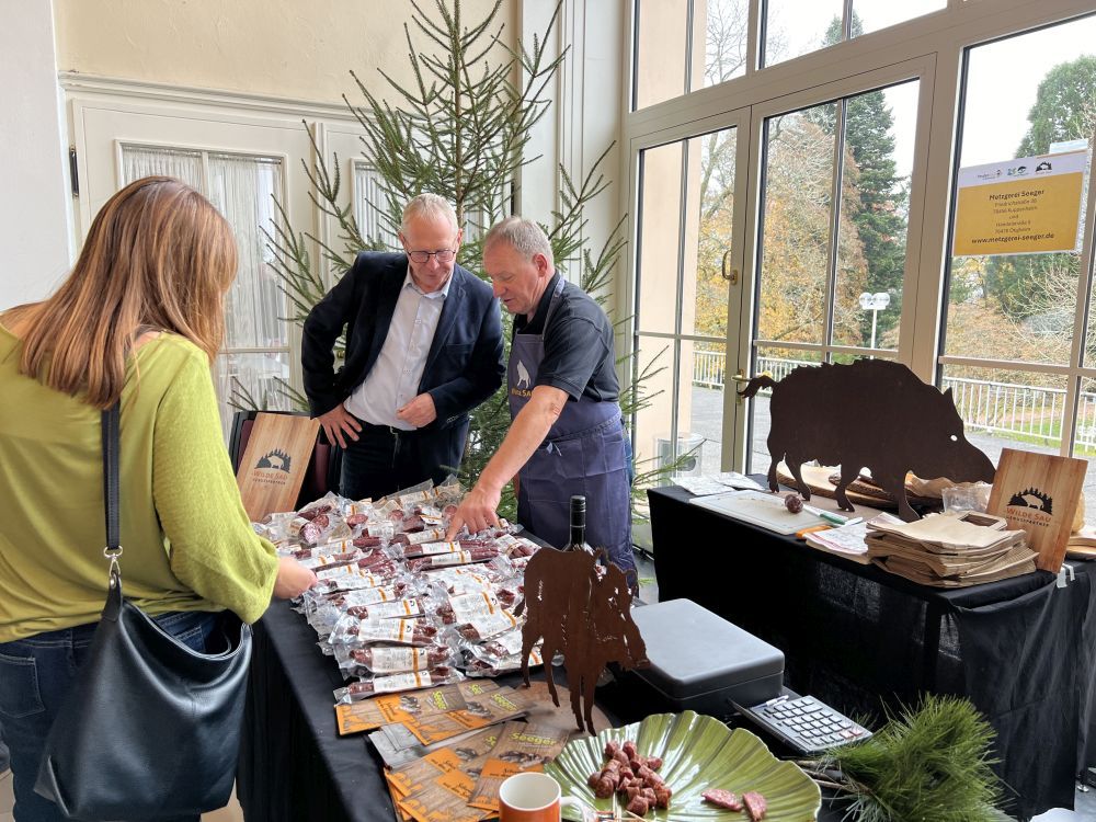 Regionale Produkte aus dem Schwarzwald von landwirtschaftlichen Betrieben sowie frisch zubereitete Gerichte aus regionalen Zutaten von Naturpark-Wirten – das bot die Genuss-Messe des Naturparks Schwarzwald Mitte/Nord am 2. November in Freudenstadt. Im Mittelpunkt stand die „Wilde Sau“. Um sie ging es in der Naturpark-Kinderwelt, im Naturpark-Wirte-Restaurant, auf dem kleinen Markt und im Naturpark-Kochstudio. Es gab ein Wilde Sau-Tasting und eine AOK-Kochshow mit Naturpark-Wirt Stefan Junghanns. Mit dabei war auch die baden-württembergische Staatssekretärin aus dem Ministerium für Ernährung, Ländlichen Raum und Verbraucherschutz, Sabine Kurtz.